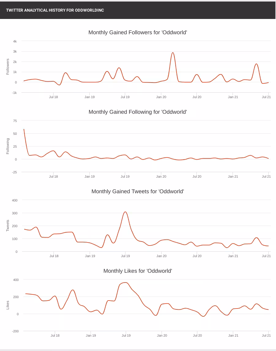 As you can see there is a slow, jagged upwards climb before the game’s release culminating in April only for activity to fall to 1/8th of the maximum in only two months. It’s too early to tell how July will look, however, based on 5 days it currently seems to be about as active as June was.