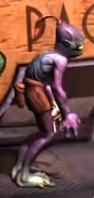 Instead of their color, the working Mudokons of Soulstorm are differentiated by their uniforms and working hats, that they throw away, when Abe calls to them. Their skin color is now only slightly darker than Abe’s.