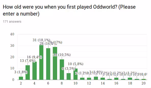 Out of curiosity I’ve decided to make a little survey about the preferences and knowledge of the average Oddworld fan. The results were quite interesting and I wish to share my thoughts about them here. The results can be found here: Results