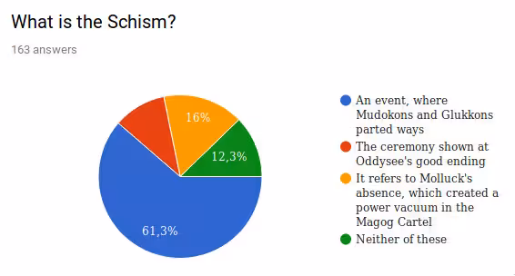 Over 60% percent of the voters knew about the story that kickstarted the conflict between Mudokons and Glukkons oh-so-many years ago.