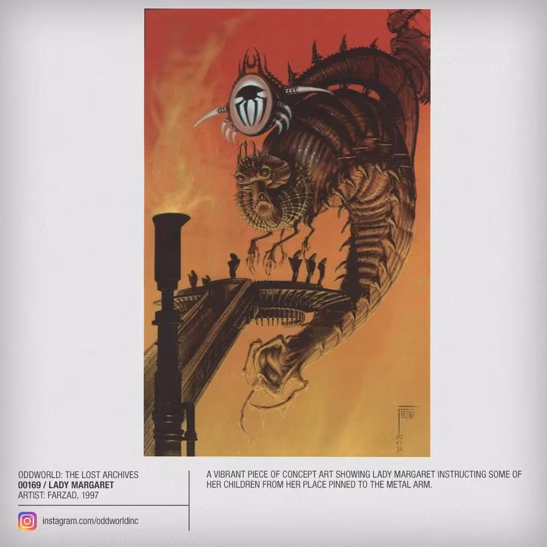 This is actually a common trope in Oddworld. Whenever you think you’ve reached the head, the boss, you’ll always find someone who stands higher. Molluck might seem like the “meanest boss in the world” to Abe, but he would probably say the same about Lady Margaret, who would say this about her grandmother (who is also a quite interesting character, who deserves a page, but that will have to wait) and she would say the same about the Investors. This is how deep we currently see into the hierarchy of Oddworld, but who knows, maybe even them have superiors or alphas.